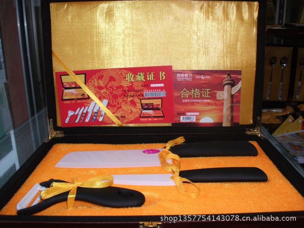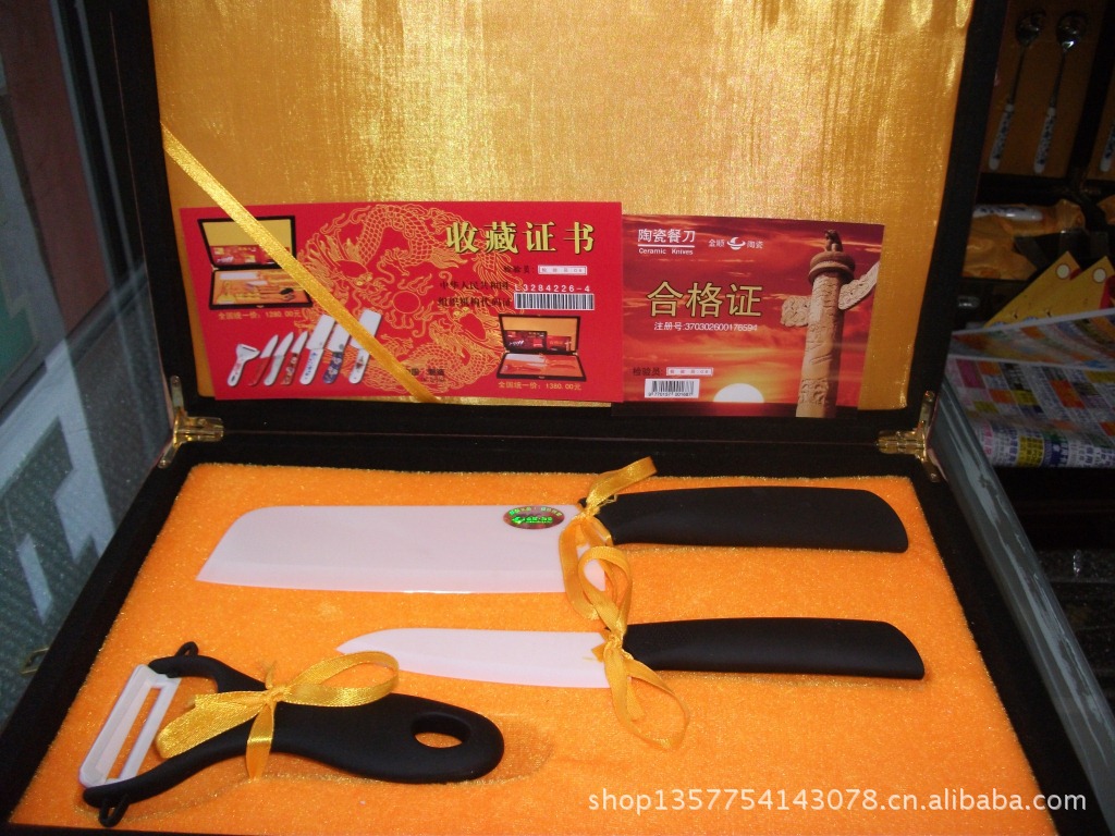 6、漂亮:陶瓷刀本性洁白如玉,有玉的光泽,刀形纤薄高雅,气质尊贵;能够加工成镜面,也能够做成具有亮丽颜色的彩刀,一刀在手,让您体会史无前例的手感和视觉享用。