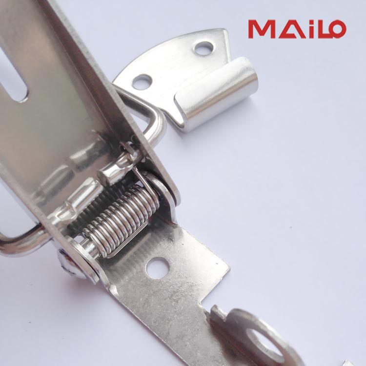 搭扣的使用一般情况下是作为一种快开、快关闭的一种功能,有时候需要迫紧或者密封要求。比如在一些工业试验设备中,经常需要把门开启和关闭,在这个过程中又需要保证门的密封和迫紧功能,搭扣则成为实现这种功能的最佳选择。我们在开启时可以很方便的拉动搭扣手柄,当搭扣开启至迫紧临界点后,即可卸掉所有的迫紧力,从而轻松开门。关闭时只需要在迫紧临界点再稍用力按下,即可实现迫紧和密封功能,整个过程快速而方便。非常适用一些经常需要开启箱体门中。