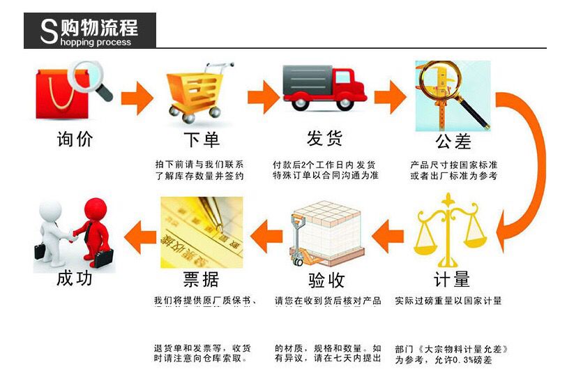 4、发货时刻:买家在下单后赶快与咱们取得联络,在承认货款到账后敏捷出货。对货运公司的挑选由买家和客服一起洽谈,宝逸金属会尽量效劳好买家。