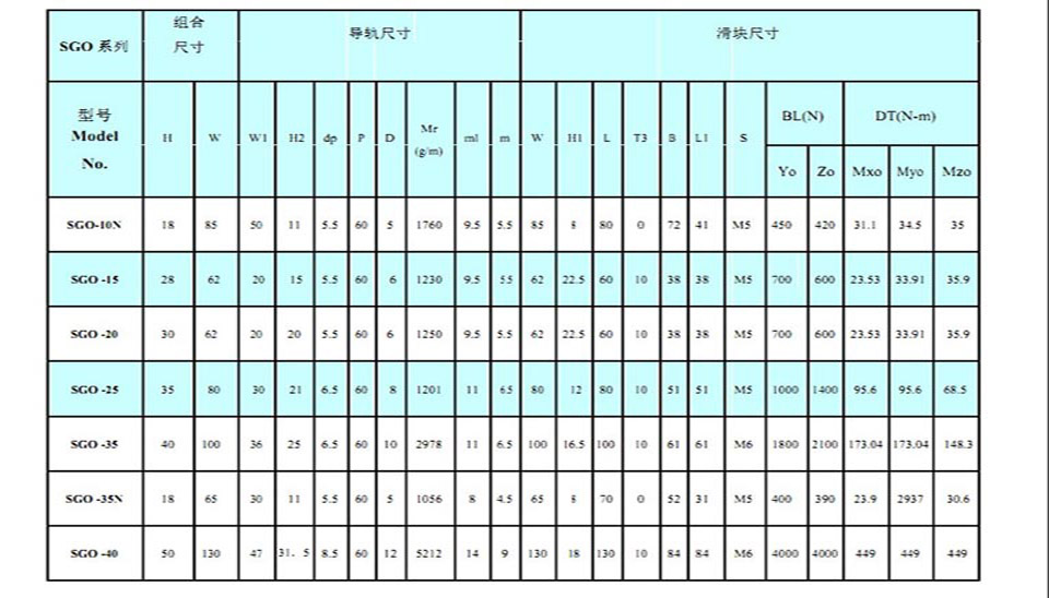 滑轨长度 | SGO35N导轨L1000MM,SGO-35N导轨L500MM |
