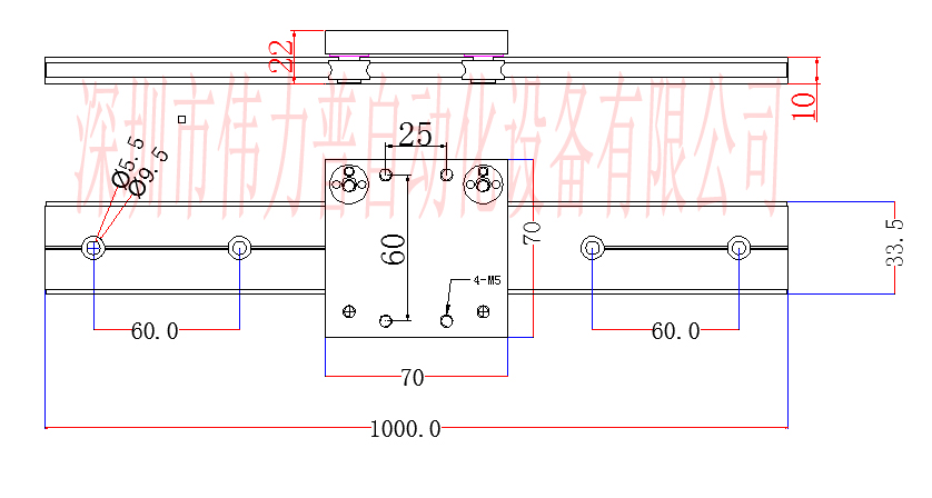 滑轨:宽度33.5MM,厚度10.2MM,装置孔巨细M5的沉头孔,孔距60MM,可依据客户要求不打孔或打不同规格的孔,滑轨长度依据客户要求恣意截取,最长不接可做5.9米长,滑轨两头的光轴巨细为6MM。分量一米长轨迹在1.3kg左右,精度一米以内5个丝,负荷单滑块水平装置15公斤以内。