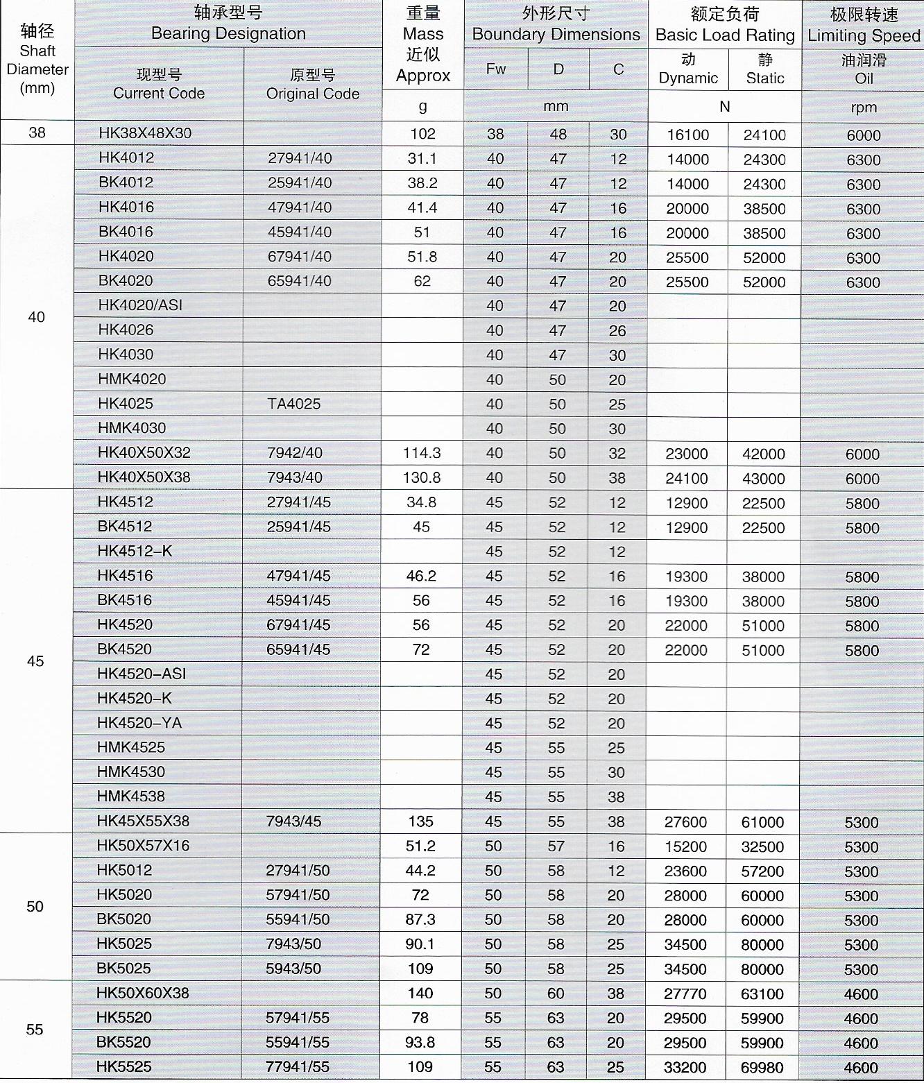 HK506038冲压外圈滚针轴承首要有带坚持架和满装滚针两种结构,两种结构各又有穿孔型和封口型之分,有坚持架的又有单面带密封圈与双面带密封圈等方式。满装滚针结构具有较大的承载才能。