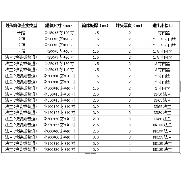滤芯尺度有:10英寸、20英寸、30英寸、40英寸