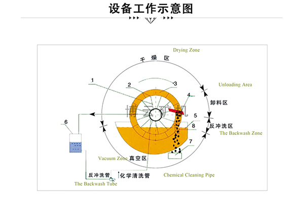 ※陶瓷过滤机的工艺流程包含滤饼的构成、滤饼的脱水、滤饼卸下和反冲刷