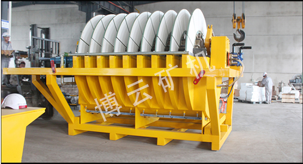 圆盘上刮下滤饼→滤液对滤盘反冲刷 →输料皮带将精矿送入矿仓。