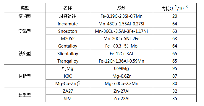 表1 部分已商品化的阻尼合金的成分和功能