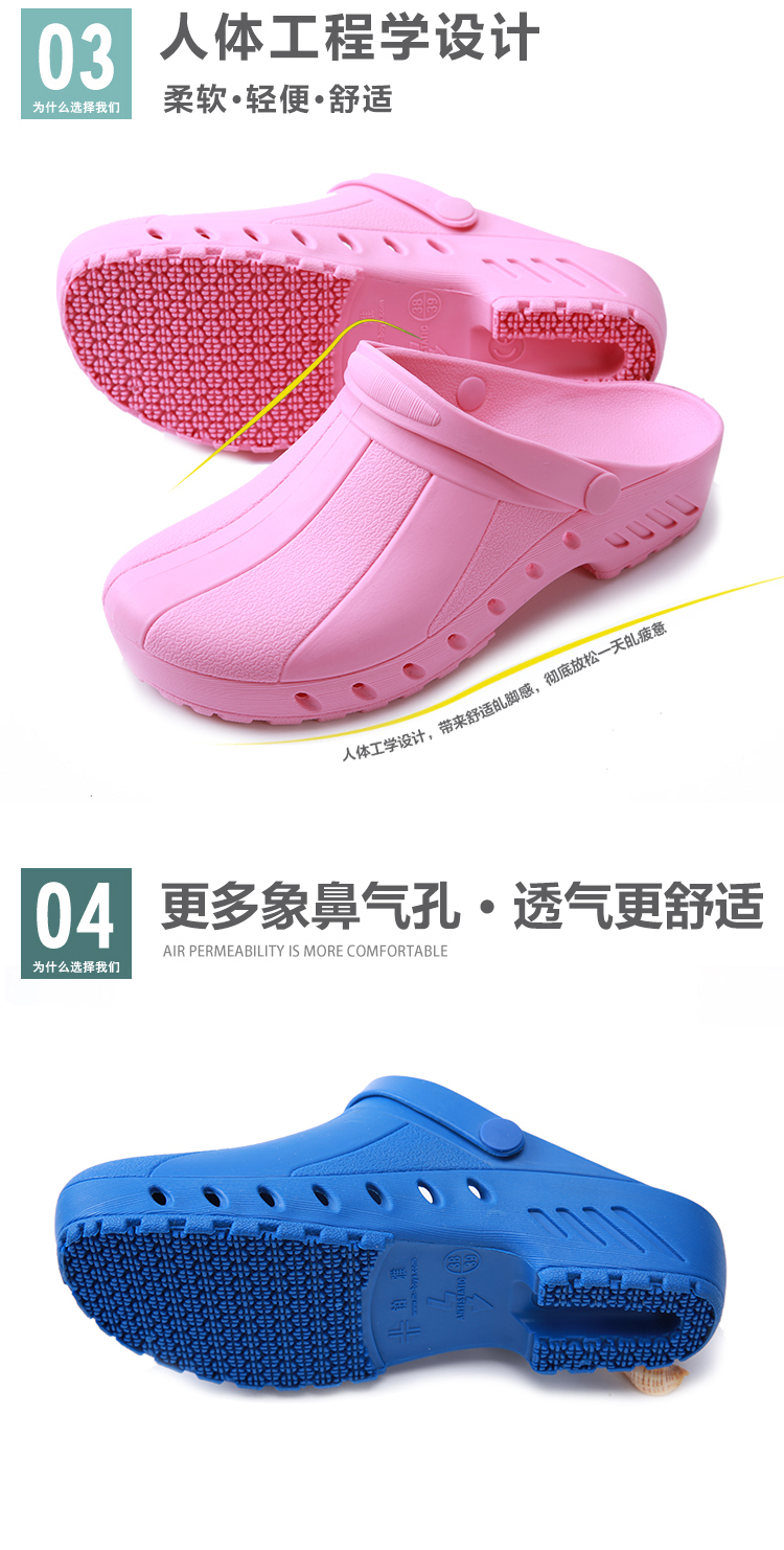 ●鞋面选用无孔规划,能够防止患者体液、血液、分泌物及含致病微生物的污染;