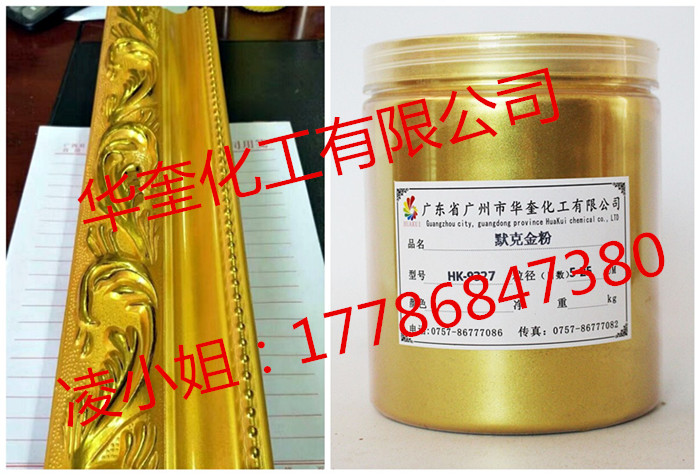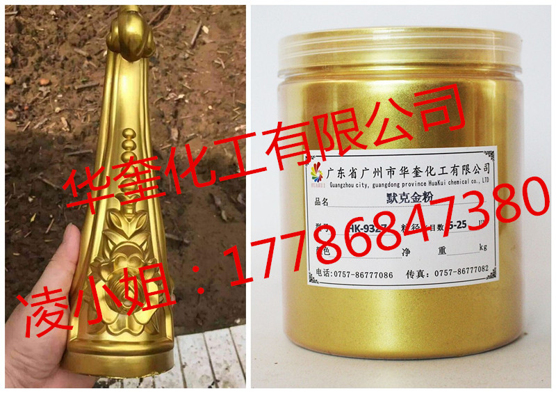 华奎999黄金粉无毒、无味、环保、耐光照、耐酸碱、不变色、不搬迁、不导电等特性,可使制品色彩金黄、艳丽、光泽亮堂,稳定性好,出现闪耀的黄金作用。本领极高温度。广泛适用于各类工艺品、装饰品、佛像、寺庙、雕琢、铁艺、陶瓷、印刷、涂料、塑料、油墨、皮革等职业,对佛像、寺庙用金粉作用赋予高雅尊贵的黄金色泽,可进步其产品附加值及竞争力。