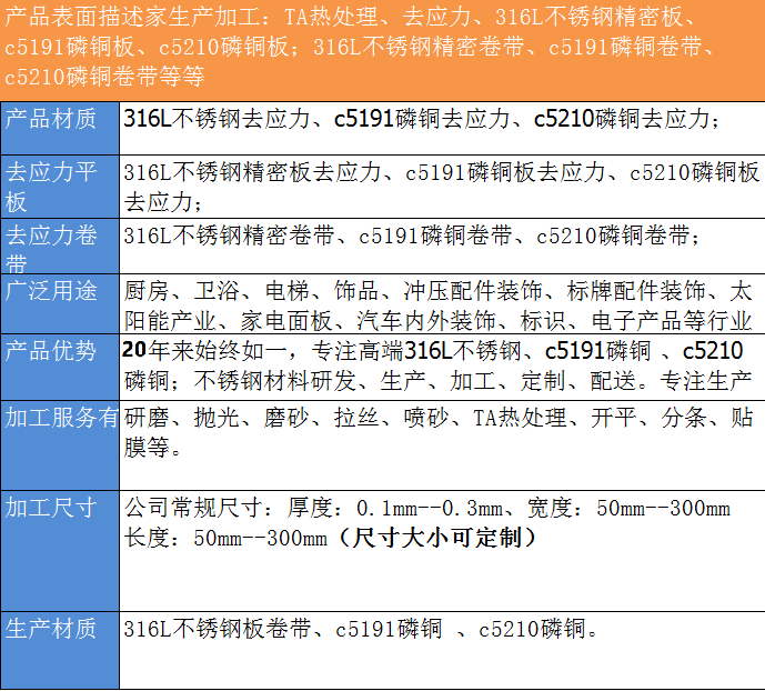 尺寸(mm):厚度0.05-0.5mm 宽度1.5-400mm 长度≥1000mm