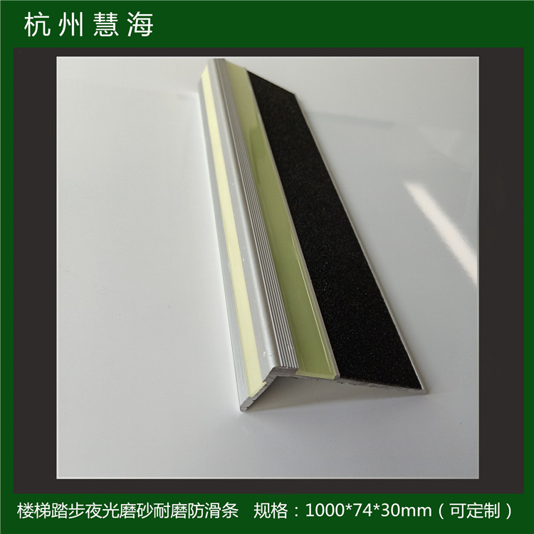 夜光防滑条不仅具有防滑功能还具有自发光功能,在白天自然光以及各种弱光源的照射下,防滑条的夜光层在黑暗的时候会发出黄绿色以及蓝绿色的光。这样人在上楼的时候能清楚的看见台阶位置。起到很好的导向作用。目前我司生产的防滑条以6061铝合金材质为主,坚固耐用,美观大方。夜光层镶嵌在防滑条凹槽中。根据客户的需求制作不同的尺寸大小的防滑条。