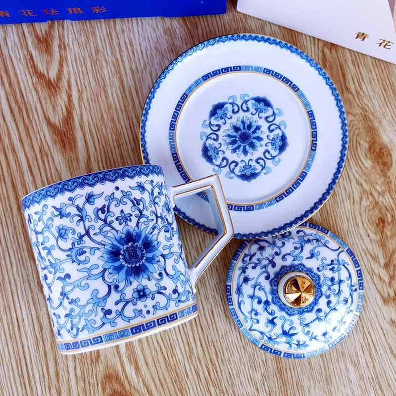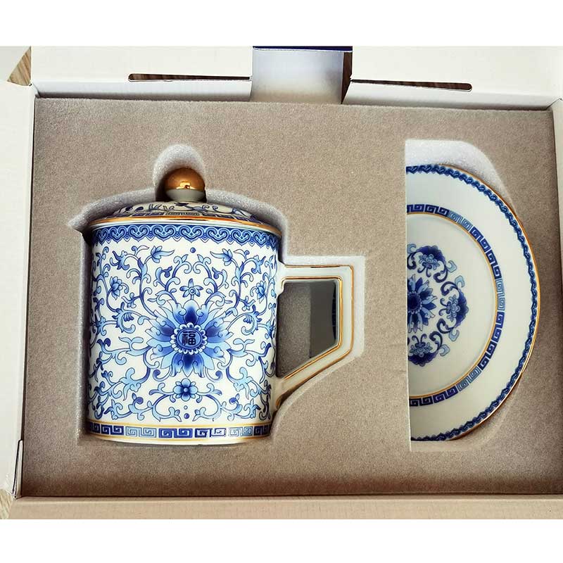 制作经验丰富,器型优美规整,款式新颖,创意人性化设计手柄,手握舒适!容量大小适合不同人群,男士女士均可用。传统中式青花缠枝莲,寓意吉祥,搭配礼盒包装送礼有面子!而且支持个性定制,可以加印文字、公司LOGO、图案等等,具有一定的深刻意义。