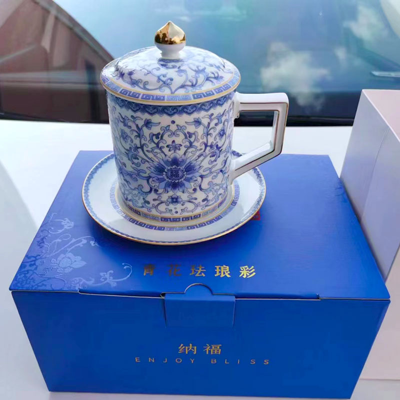 商务会议办公杯定做,陶瓷办公杯定制加字,青花珐琅彩茶杯礼品,会晤用办公杯带盖,手工描金办公会议杯,景德镇陶瓷茶杯礼品..