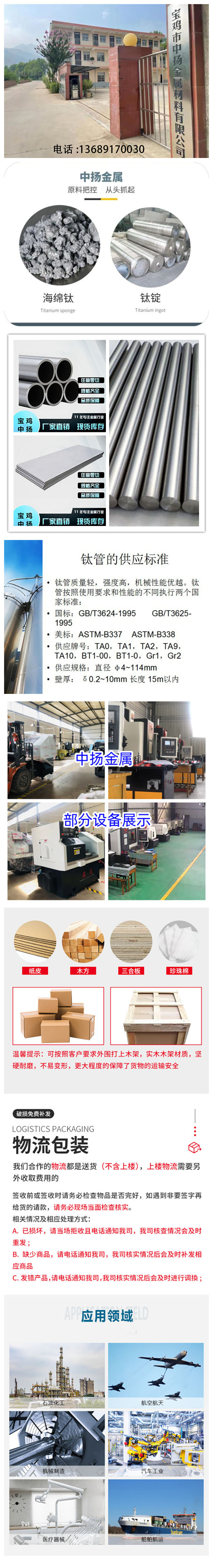 “宝鸡市中扬金属材料有限公司”位于素有“钛谷”美誉的陕西省宝鸡市宝钛大道,是经国家批准的专业从事以稀有金属材料加工、生产、销售、开发为一体的综合性技术企业。公司依托产品和技术的优势,已形成钛及钛合金材料及其深加工制品等一整套生产加工工艺。公司主要产品有:钛及钛合金标准件、异形件、靶材、板材、棒材、丝材、箔材、钛锻件、钛设备钛制工艺礼品,钛制体育用品。尤其在钛及钛合金标准件、异形件 各类精密零部件的生产加工有突出成效。于二零二一年先后取得ISO 9001:2015质量管理体系及AS 9100D(民用飞机中小型金属结构件及标准件加工)质量管理体系认证。产品广泛应用于化工、石油、制药、电镀、环保、航空航天等行业。