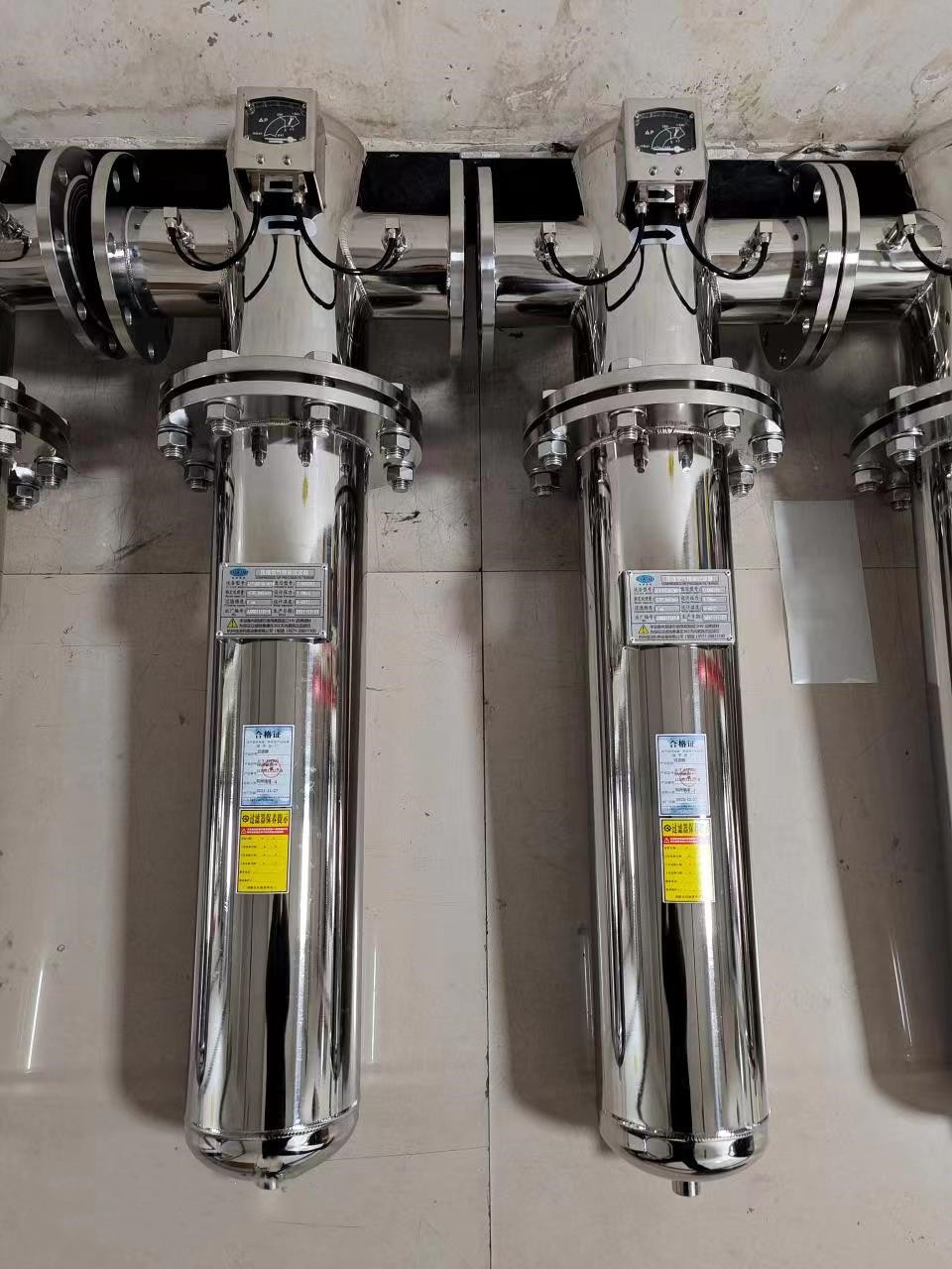 进入除菌过滤器的压缩空气至少三级的精密过滤器及干燥机。除油、除水、除尘,油雾浓度应≤0.01PPM,否则将影响除菌滤芯的寿命,到预期的除菌效果。