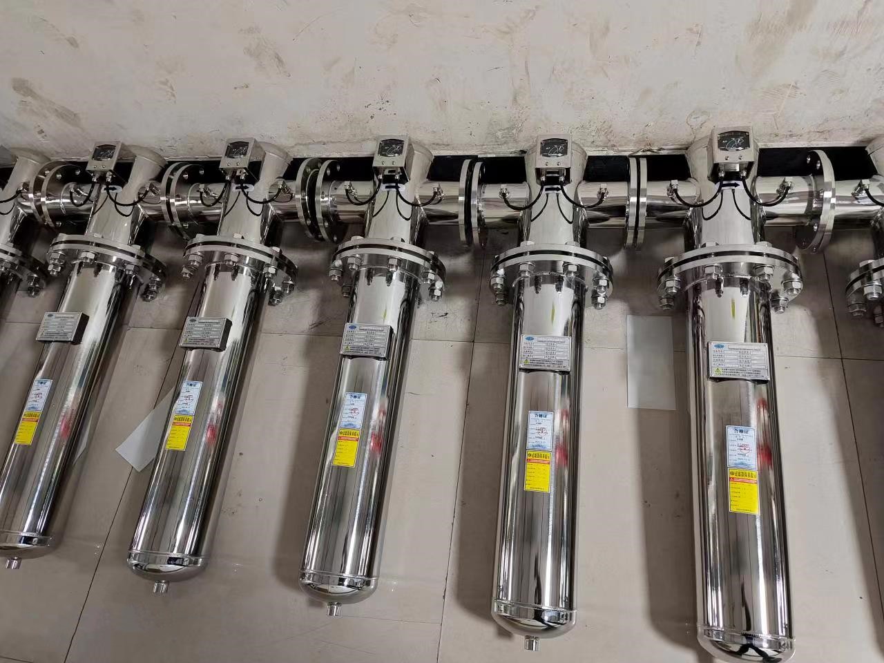 除菌过滤器采用十字悬挂式,水平进出。多芯过滤器可设计成落地式。