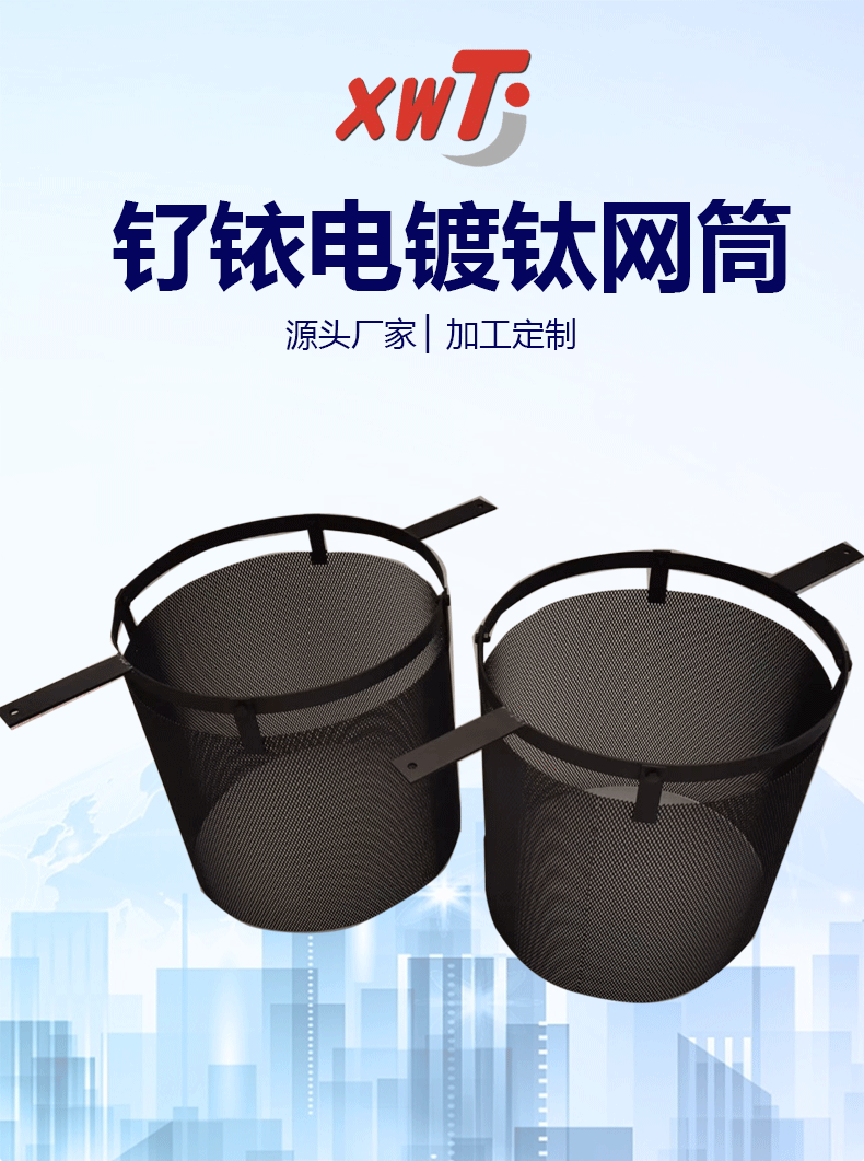 加工定制钌铱电镀钛网筒 化工污水处理钌铱钛网筒 贵金属钛网筒