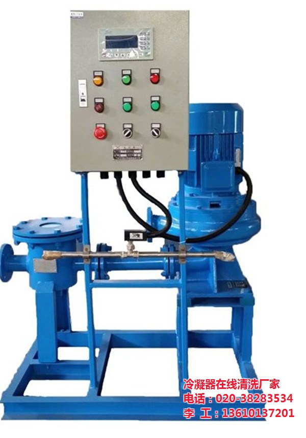 冷凝器管内壁的堆集很多水垢、尘垢、生物污泥,使冷凝器的传热功率下降。冷凝器管尘垢的传统处理办法是化学水处理和周期人工机械捅刷,但是化学水处理并不能彻底解决尘垢,粘泥堆积,菌藻、锈蚀物的发生,所以需辅佐定时的机械捅刷。传统处理办法耗时耗力,现在冷凝器在线清洗设备替代定时机械捅刷,使冷凝器管一直处于洁净状况。