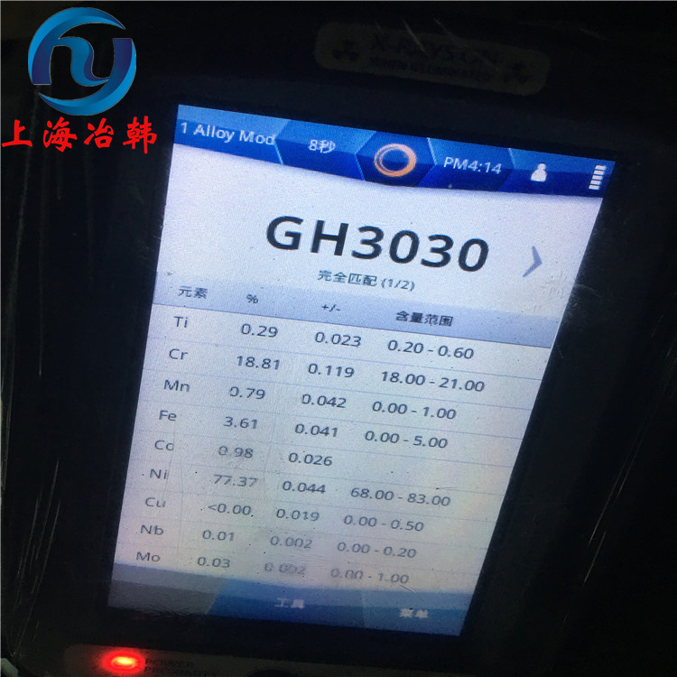 Nimonic 75含铝(≤0.15%)和钛(0.15-0.35%),而GH3030的铝含量更低(≤0.15%),钛含量为0.15-0.35%。两者均以镍(余量)和铬(19%-22%)为主,但GH3030的铬含量上限更高(22%)。