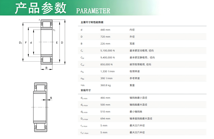 1、可增加额定动载荷Cr 20%
