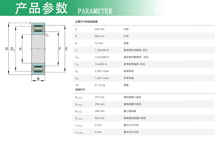 舍弗勒FAG圆柱滚子轴承NU248E-TB-M1 重齿JLP400减速机
