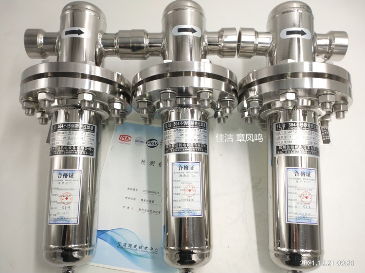 杭州佳洁长期生产食品级不锈钢过滤器,产品经第三方检测认证,公司生产的滤芯滤材经第三方按FDA标准检测认证,各个微米,颗粒物数量经第三方检测认证,除尘、除油水、除菌效果经第三方检测认证。杭州佳洁提供不锈钢过滤器GMP认证、AIB认证材料,帮助企业顺利通过生产认证考核。进入压缩空气不锈钢除菌过滤器的空气是除湿脱油的空气,相对湿度应保持70以下,以使过滤效果达到好状态;