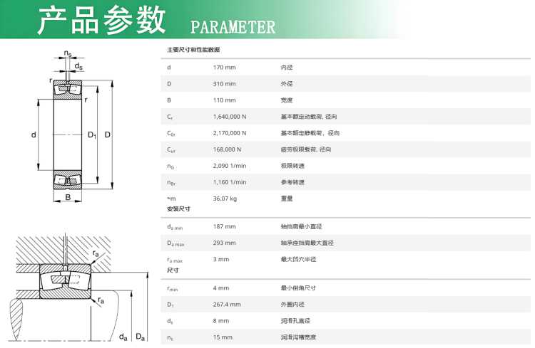 舍弗勒FAG调心滚子轴承23234E1A.M.C3重齿JH800C回转窑减速机