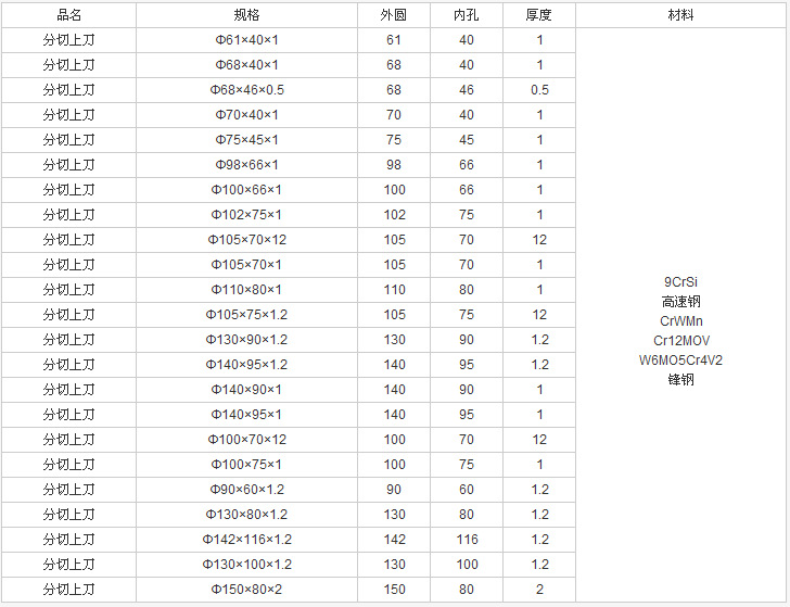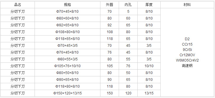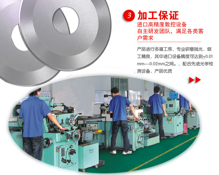 分切机刀片首要用于: 纸张、胶带、磁带、薄膜、金、银、 铜、铝、汰合金箔等物品的纵切。