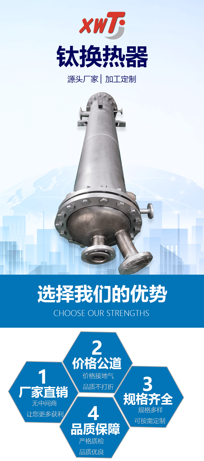 欣旺腾加工定制TA2钛合金罐体设备 钛合金换热器 来图定制管式换热设备