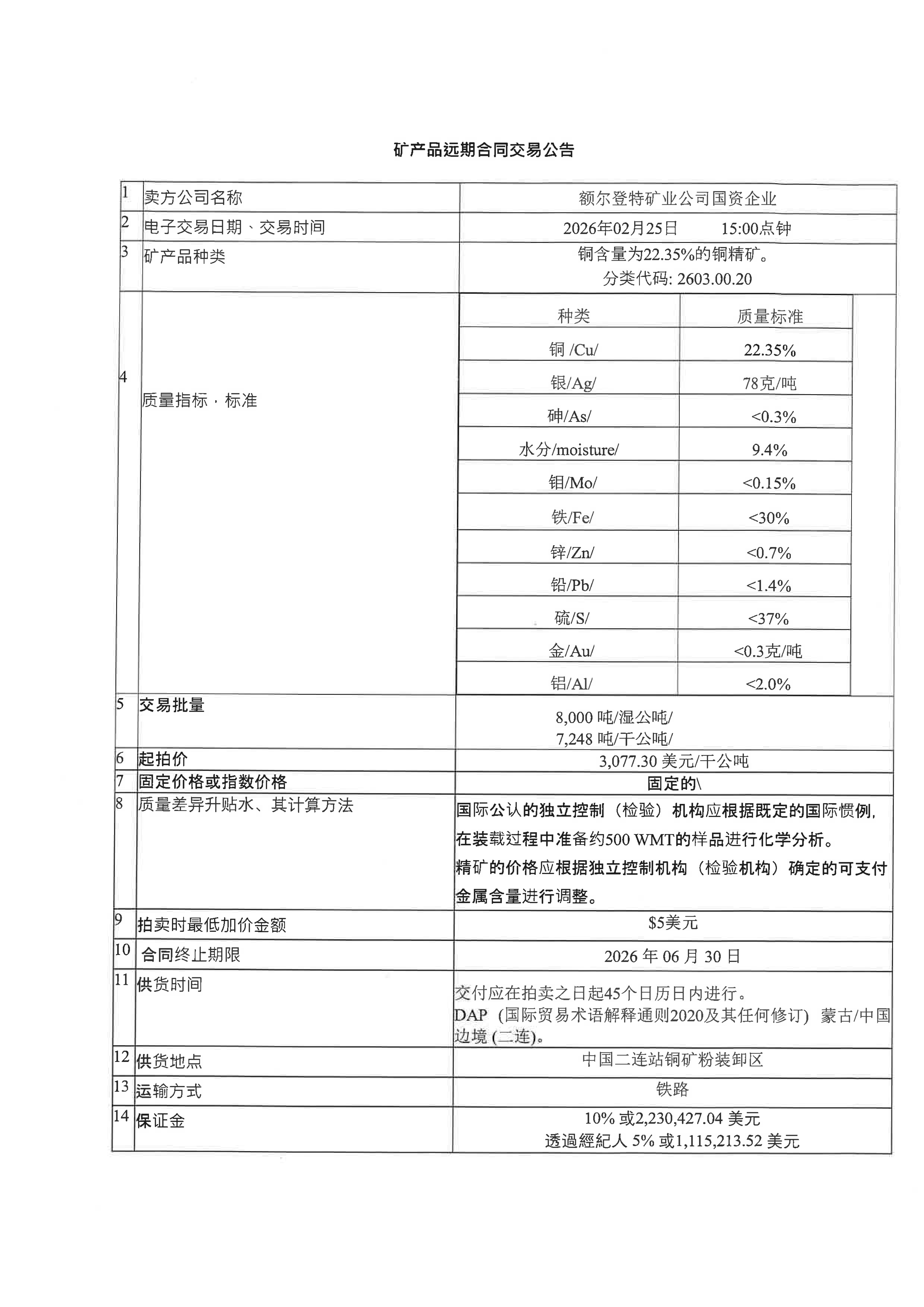 蒙古国铜精矿、铁矿石、煤炭、萤石矿萤石精粉