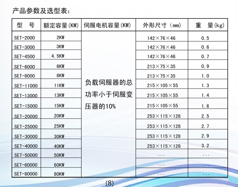 本产品选用前沿的微波器材,三相全桥开关谐振技能,SPWM调制技能,彻底消除EMI搅扰,广泛使用于三菱、安川、松下、三洋、台达、东元、富士、日立、欧姆龙、AB、法拉克、施耐德、路斯特、科比、伦茨、广数、华中…等一切进口,国产伺服系统;该变压器的容量能够从0.5KVA到80KVA,满意了一切伺服电机电压的匹配。