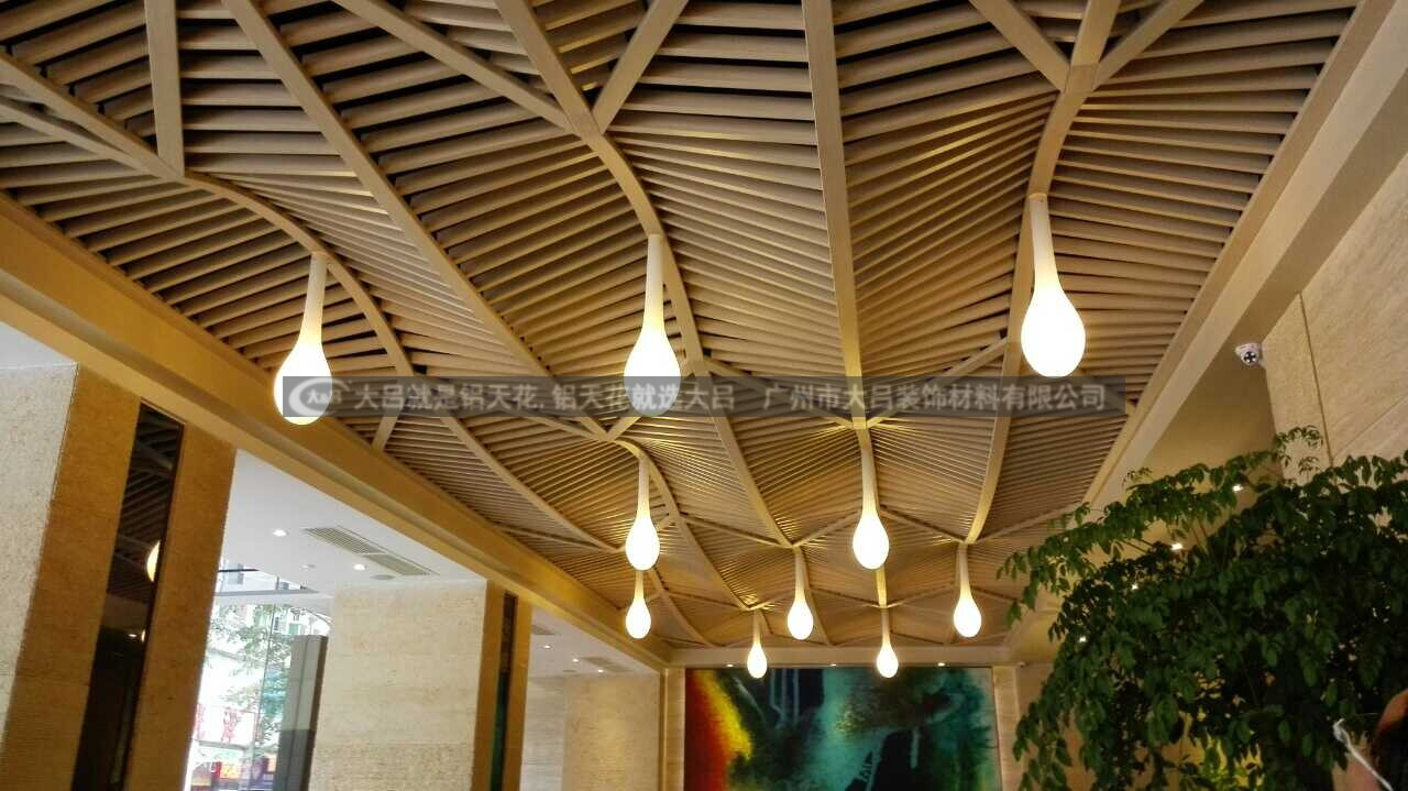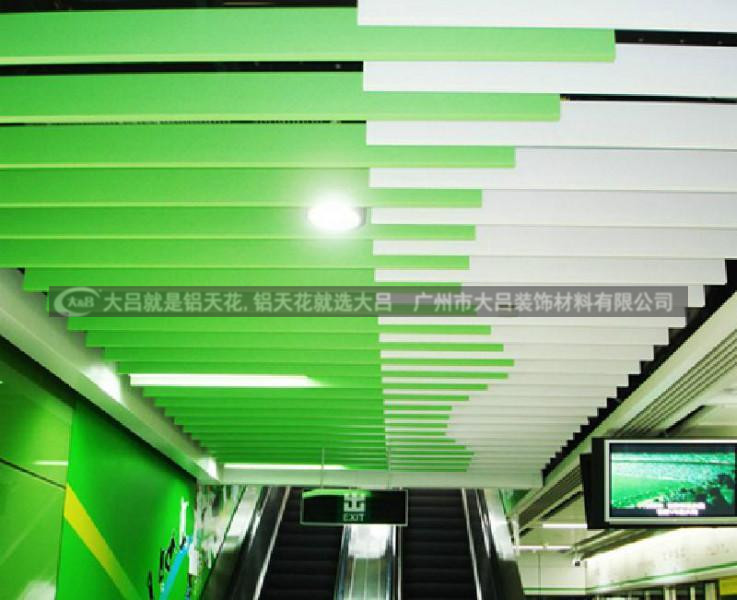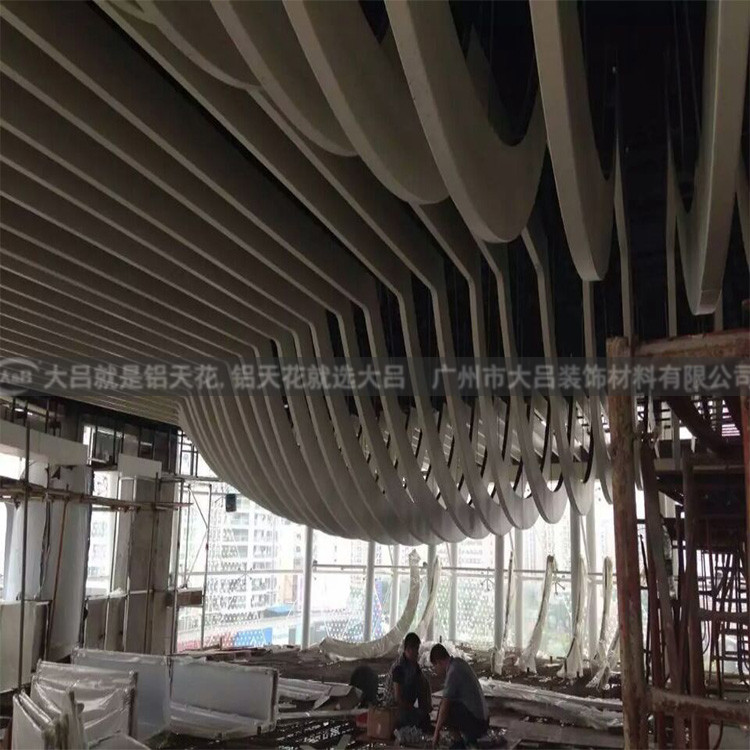 铝方通吊顶是一种装饰性垂帘型吊顶天花,线条明快潇洒,全体通透,吉祥,色泽丰厚。选用恰当的高度,以恰当视觉视点,能发生幕布作用,使得规划改变万千,作用漂亮。