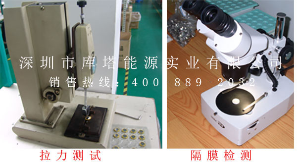 B、隔膜检视,在8倍以上放大镜下检测,电池隔膜无伤害,穿孔,锂片无穿透;D、拉力测试:防止焊接过轻,如CR2032电池一般正极焊片拉力≥2.5kg,负极拉力≥1.5kg,其他要求按图纸或生产单执行;